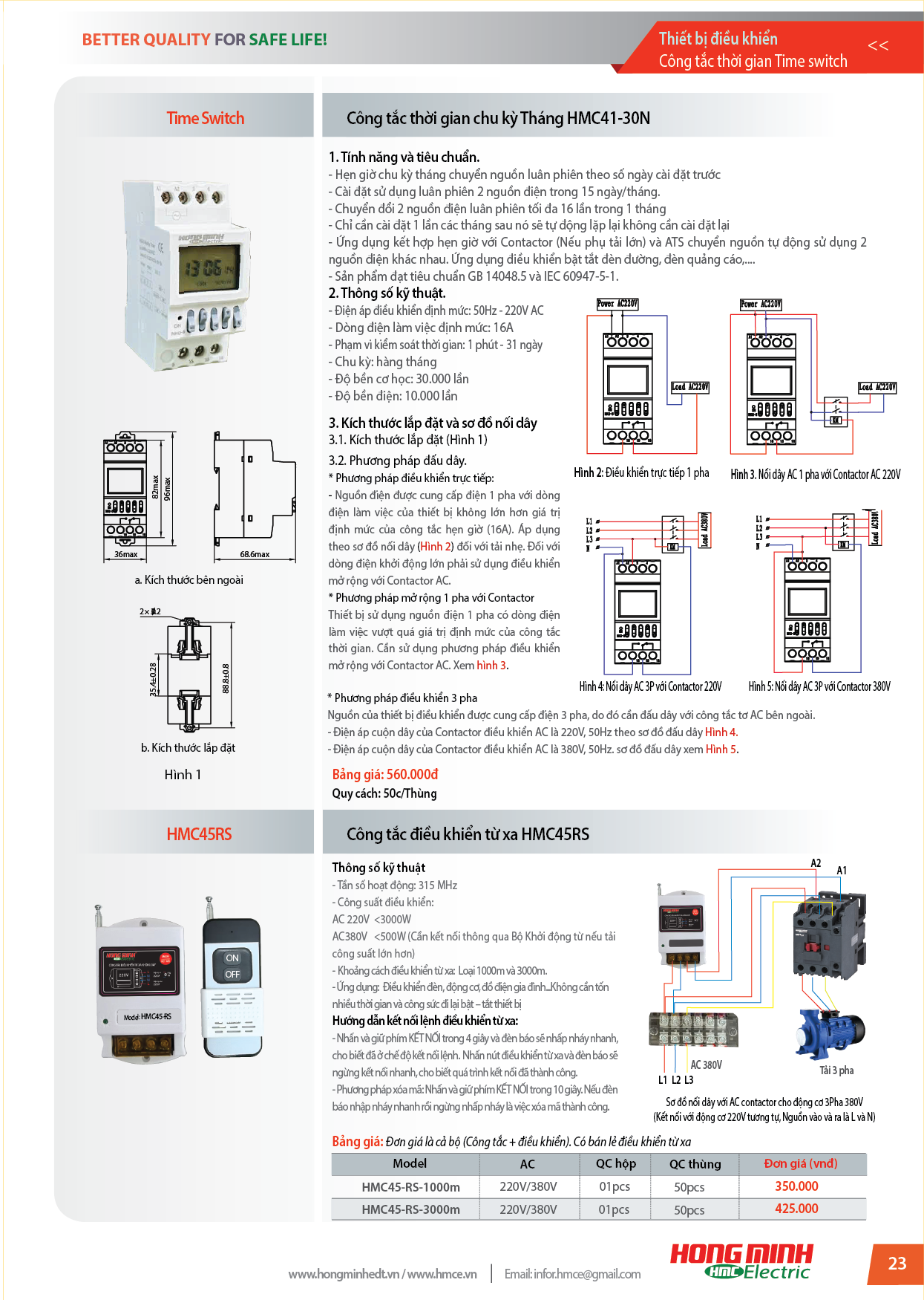– Điện áp điều khiển định mức: 50Hz – 220V AC